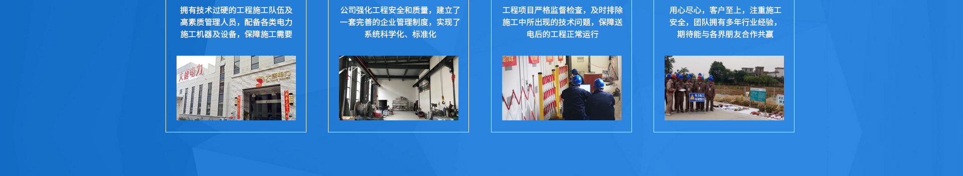 馬鞍山市大唐電力工程有限公司成立于2013年10月,是一家以電力、機電、電儀等系統建設為主的建安公司,公司坐落于美麗的詩城馬鞍山,公司生產用廠房及配套辦公面積2000余平方。 目前公司擁有技術過硬的工程施工隊伍及一大批高素質管理人員,其中項目經理、施工經理、工程師、造價師、質量員、安全施工員、資料員、進網高低壓作業人員等各類專業技術人員近百人。同時配備各類電力施工機器及設備,以保障工程施工質量及生...